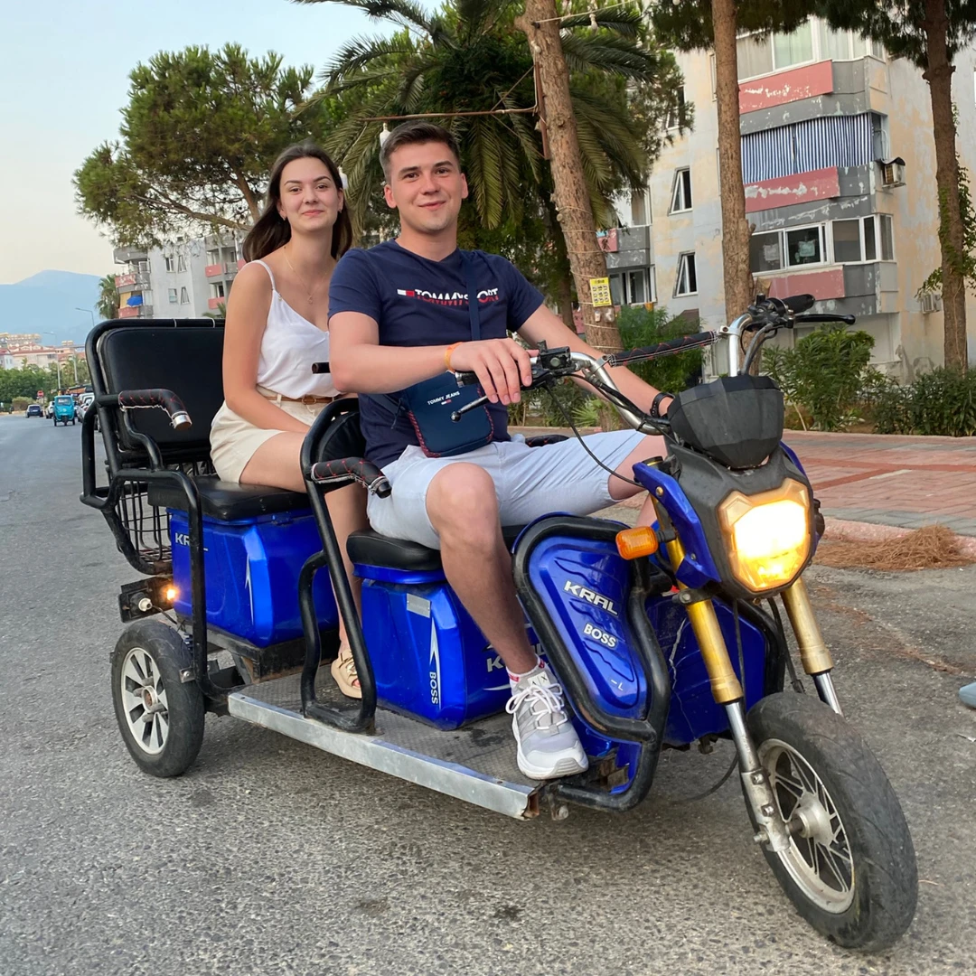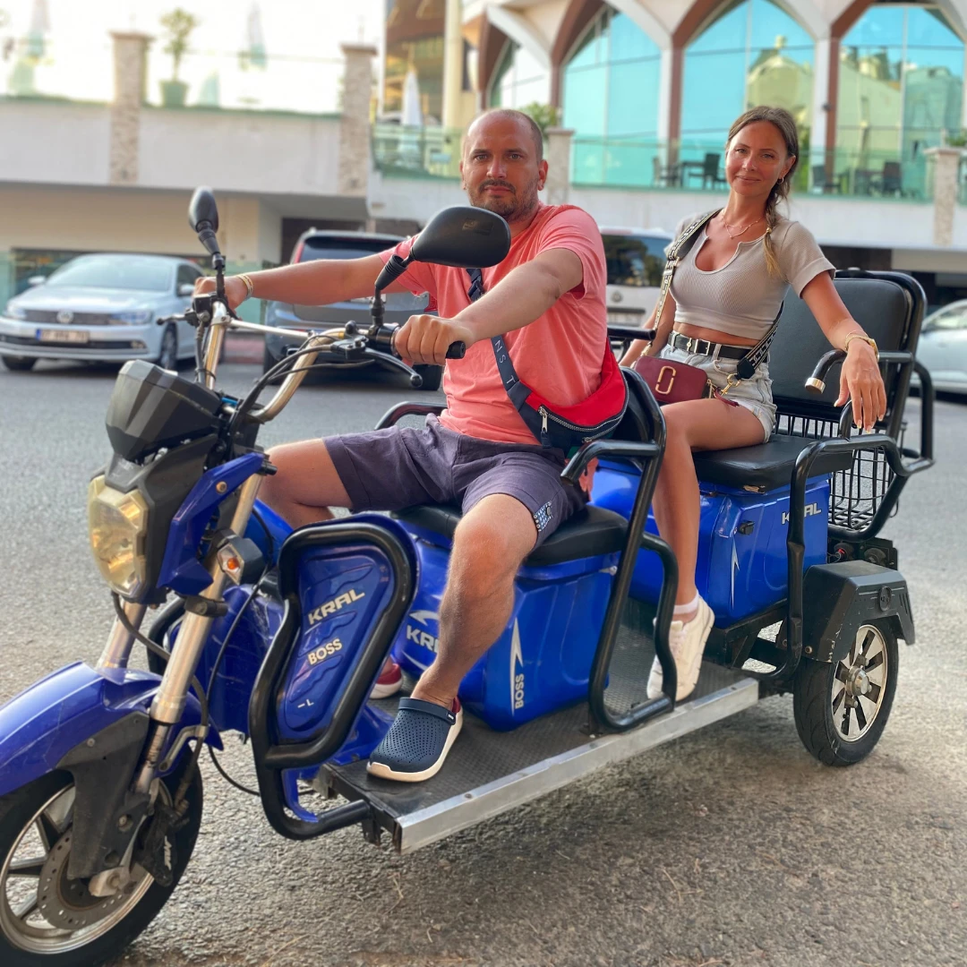 The motorcycle, which can carry three people, can be used without fuel costs. You do not need a license to drive this motorcycle.